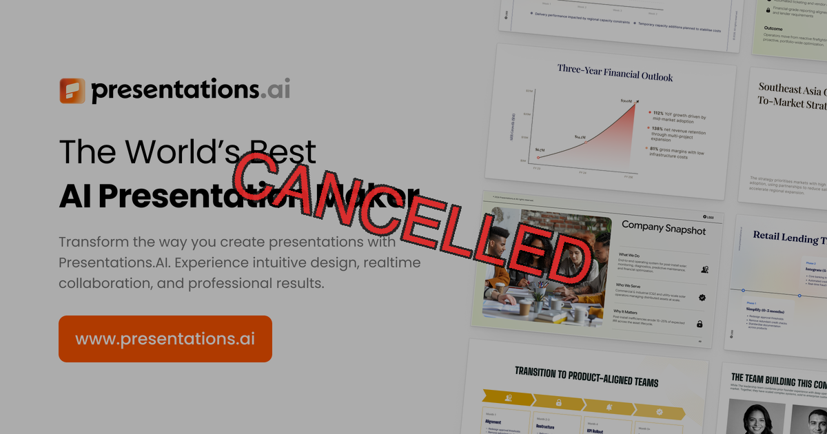 Important: Deleting your Presentations.AI account does NOT cancel your subscription. Their FAQ explicitly states: "If you are on a Pro plan, deleting your account does not cancel your subscription."